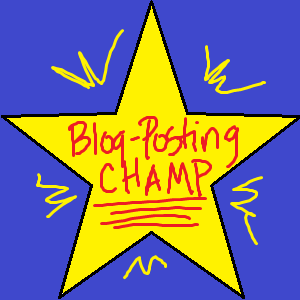 C. THANK YOU FOR THE GOLD STAR, LAC! I am very tempted to print it out and shove it in beside my diploma. Then I can be all "I graduated Magna cum laude AND I'm a Blog-Posting Champ. How can you NOT accept me, graduate schools? Don't you know that CHAMP stands for 'Carly Has Awesome Medical Powers'? JEEZ. Tell your colons to get your shit together."